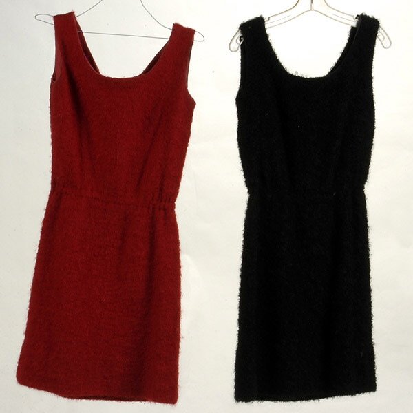Two Wool 60's Shift Dresses, Black and Red