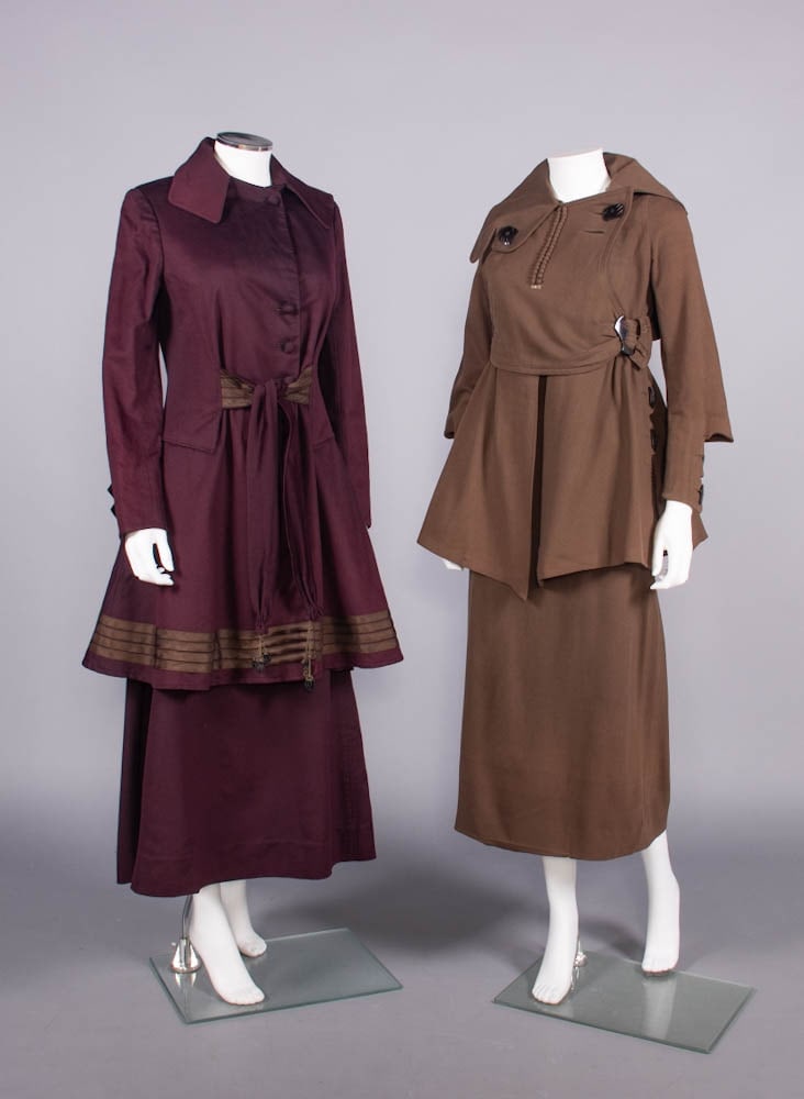 TWO WOOL BROADCLOTH WALKING SUITS, c. 1915-1918
