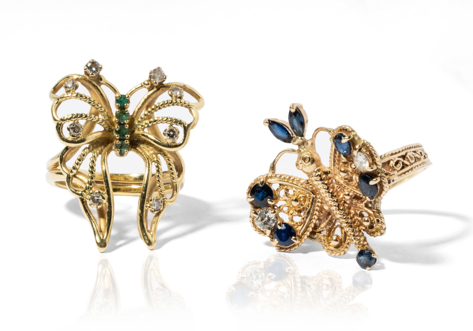Two Yellow Gold Gem-set Butterfly Rings