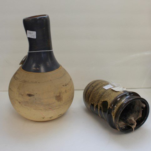 SoldTwo(2) Miscellaneous Pottery PiecesWeller pottery gourd vase. Signed; Studio pottery wall pocket; 6.5in. - 10in.H.See Sold Price