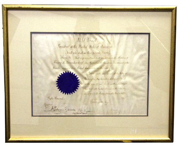 SoldUS GRANT SIGNED NAVAL COMMISSION 1871Signed commission / appointment (very indistinct signature) by President US Grant in 1871 for George H. Torney to be Assistant Surgeon to the Navy. Also signed by Secretary of the Navy George M. RobesSee Sold Price