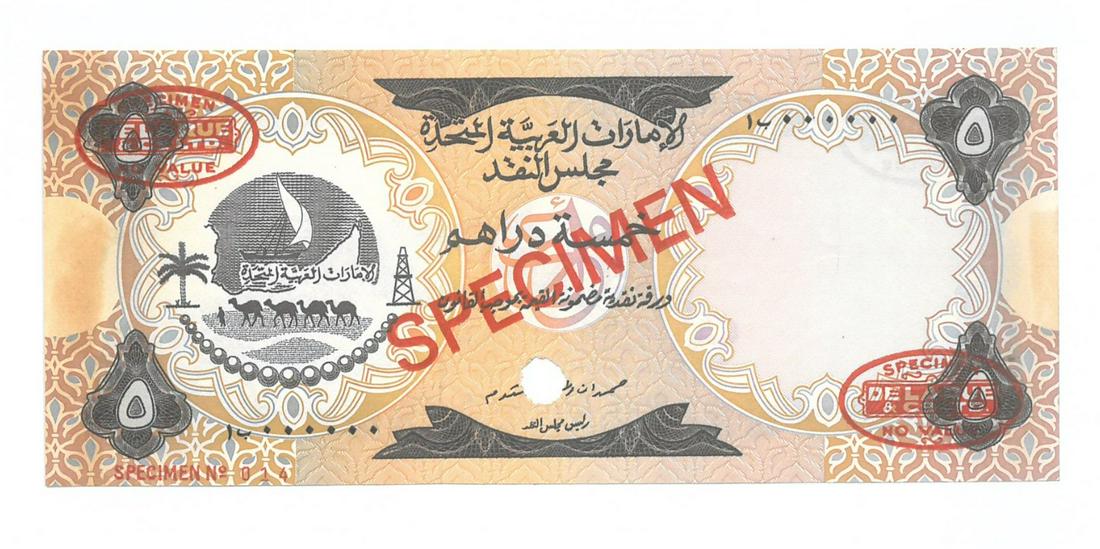 UAE 5 Dirhams first issue Specimen