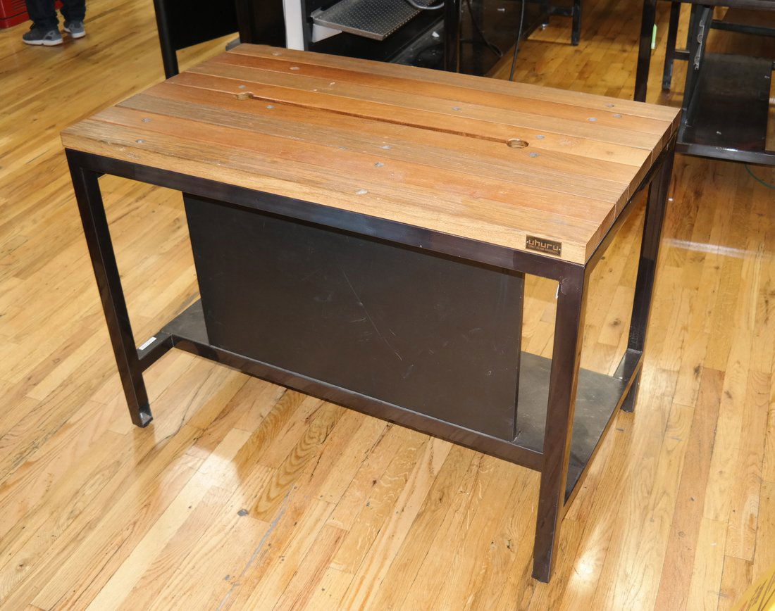 SoldUhuru Custom High TableTable featuring minimalist cable-friendly design. Restored ipe from the Coney Island Boardwalk on painted steel base. Handmade in Brooklyn by Uhuru Design for Tekserve. Dimensions: 36.00 " WSee Sold Price