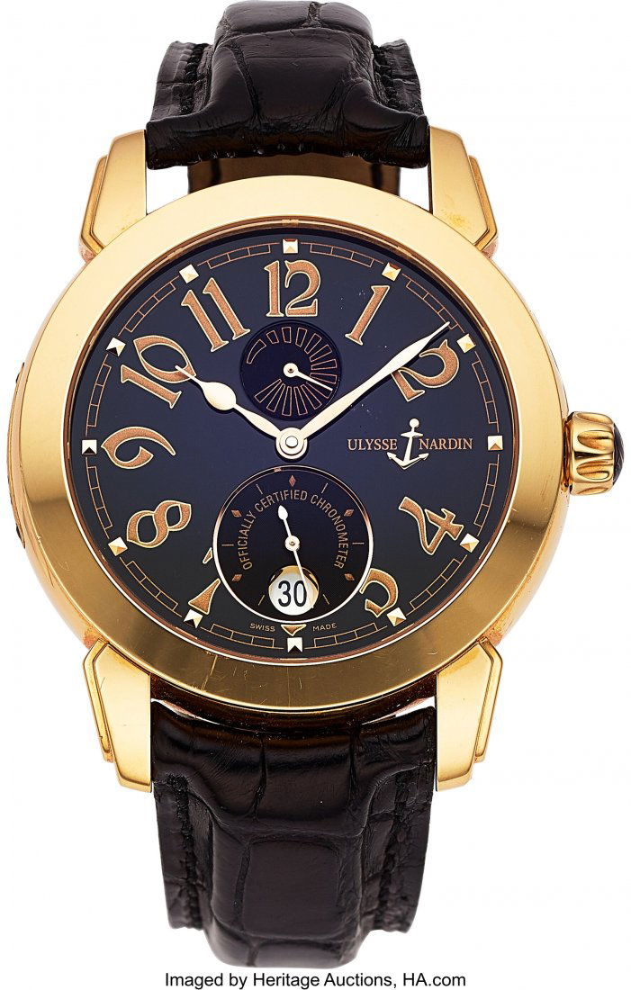 Ulysse Nardin San Marco 18K Yellow Gold Automatic Watch 37mm5 days LeftUlysse Nardin Hourstriker 18K Rose Gold Automatic Watch Ref 756-884 days LeftULYSSE NARDIN, MAXI MARINE CHRONOGRAPH, 18K PINK GOLD, REF. 356-66, NO. 17143 days LeftUlysse Nardin Chronometer 14K Gold Filled Mechanical WristwatchMar 13, 2026VINTAGE SWISS ULYSSE NARDIN GOLD PLATED WATCHMar 08, 2026JEWLERY. Vintage Ulysses Nardin 14kt Gold Watch.Mar 08, 2026Rolex. A 14K gold automatic bubble back wristwatch with custom locomotive dial Oyster Perpetual...18 hrs LeftMaurice Lacroix Masterpiece Squelette 18K Yellow Gold Watch MP7048 with Box and PapersMar 09, 2026Frederique Constant. A gold plated quartz perpetual calendar wristwatch with moon phase Classic...POCKET WATCH ULYSSE NARDIN 18K YELLOW GOLD 51 MM WHITE WATCH OPEN FACE 82 GRAMSMar 08, 2026Patek Phillipe Annual Calendar 5146J-010 Yellow Gold Grey Dial Men's Watch 39mmULYSSE NARDIN DIVER CHRONOMETER AUTOMATIC WATCH4 days LeftPatek Philippe 18K Yellow Gold Complication Watch Ref 5015JMar 07, 2026Auguste Reymond. 18K Gold Automatic Calendar Chronograph Wristwatch2 days LeftBreguet Classique 18K Yellow Gold Automatic Watch Ref 32907 days LeftPatek Philippe World Timer 18K Yellow Gold Watch 5231J-001 with Box and Papers4 days Left