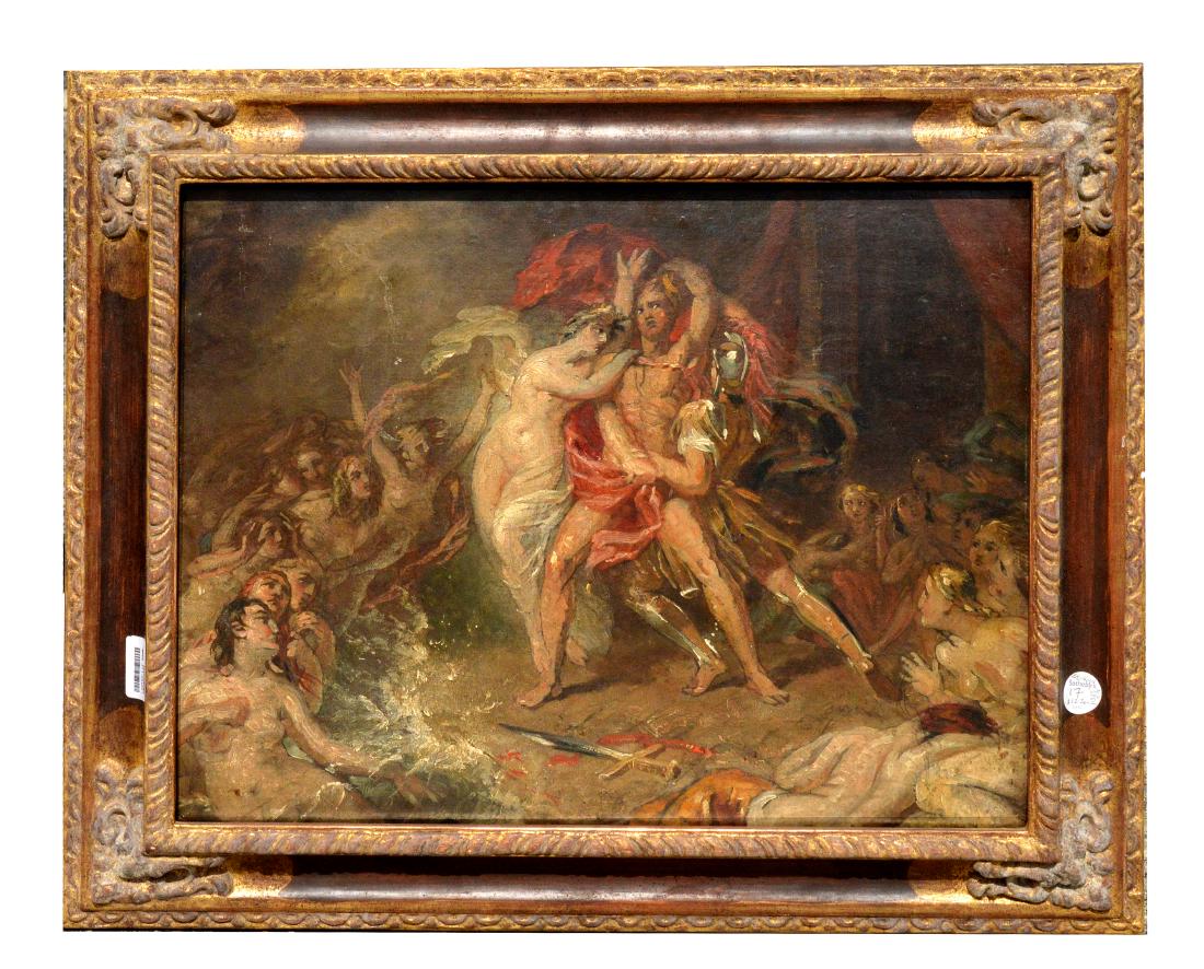SoldA Contemporary Figurative Painting, Ulysses and the SirensA Contemporary Figurative Painting, Ulysses and the Sirensoil on board, 1995, signed "Richard (illegible)" at lower right, inscribed and dated on the verso, unframed. 36 1/4 x 45 in. From the Estate oSee Sold Price