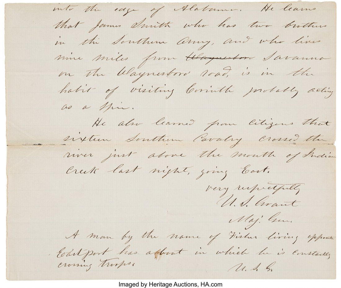 Ulysses S. Grant Autograph Letter Signed. Two pa5 days LeftUlysses S. Grant Signed Document 4x8 with COA Beckett August 29 18463 days LeftAbraham Lincoln Handwritten and Signed Notation, Wartime4 days LeftPhilip H. Sheridan Letter Signed to George A. Cu5 days LeftDr. Mudd, Samuel Arnold, and Ned Spangler letterMar 02, 2026ROBERT E LEE AUTOGRAPH LETTER SIGNED.Mar 01, 2026William A. Denny 1st Lieut. Ohio 98th Infantry LetterMar 02, 2026Death of William Youngblood Confederate EphemeraMar 02, 2026John Brown related letters, Thomas Higginson, etc.Mar 02, 2026PA Civil War Letters: Prison Guard, Lieutenant , etc.Mar 02, 2026Elisha Burr New York 147th letters GettysburgMar 02, 2026John Avis Brown's Jailer Harper's Ferry docs.Mar 02, 2026Soldiers' letters with Lincoln assassination contentMar 02, 2026Major William Hunter 32nd Ill. Infantry Hatchie BridgeMar 02, 2026Horace James Chaplain & Captain 25th Mass lettersMar 02, 2026G.W. Aughenbaugh Letters - Deserters coming, etc.Mar 02, 2026