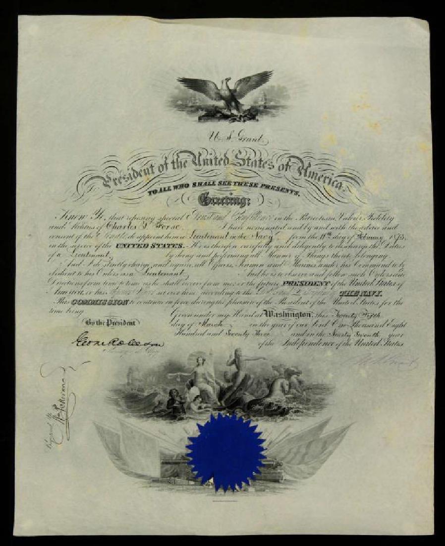 SoldULYSSES S. GRANT SIGNED APPOINTMENTA commission signed by President Ulysses S. Grant, enacted on March 14, 1872, appointing Greenleaf P. Davis to Collector of Internal Revenue in the Nineteenth District of Pennsylvania, signed by GrantSee Sold Price