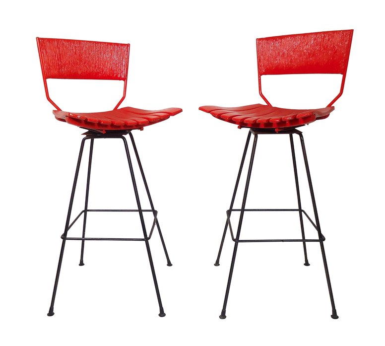Restored Rattan Spiral Leg Strand Pair of Two Single Stand Red Bar StoolsChairish Auctions4.5(10.3k)$550