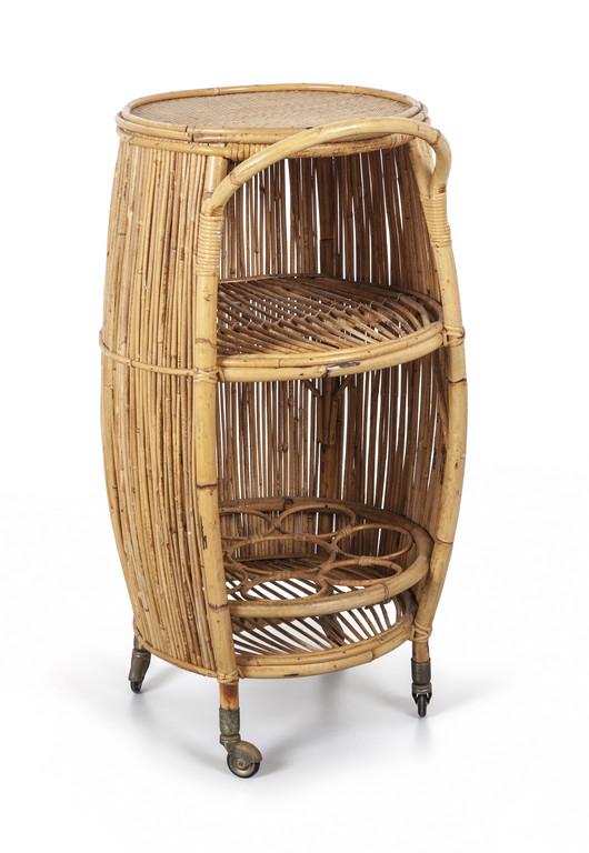 UN CARRELLO-BAR, anni '60. Bambù, giunco e