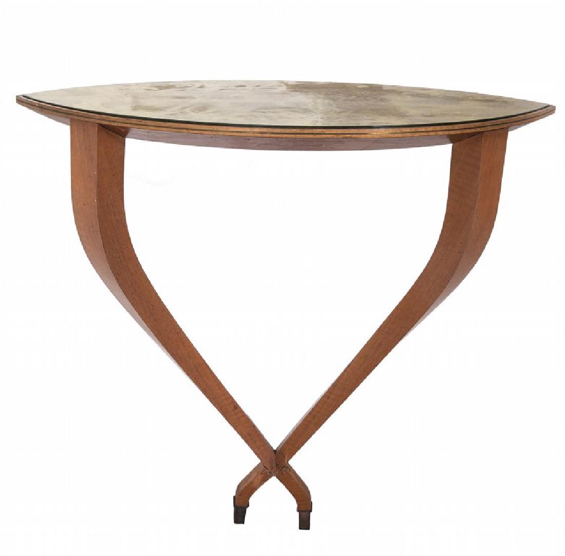 UNA CONSOLE, anni '40. Legno di noce, ottone,