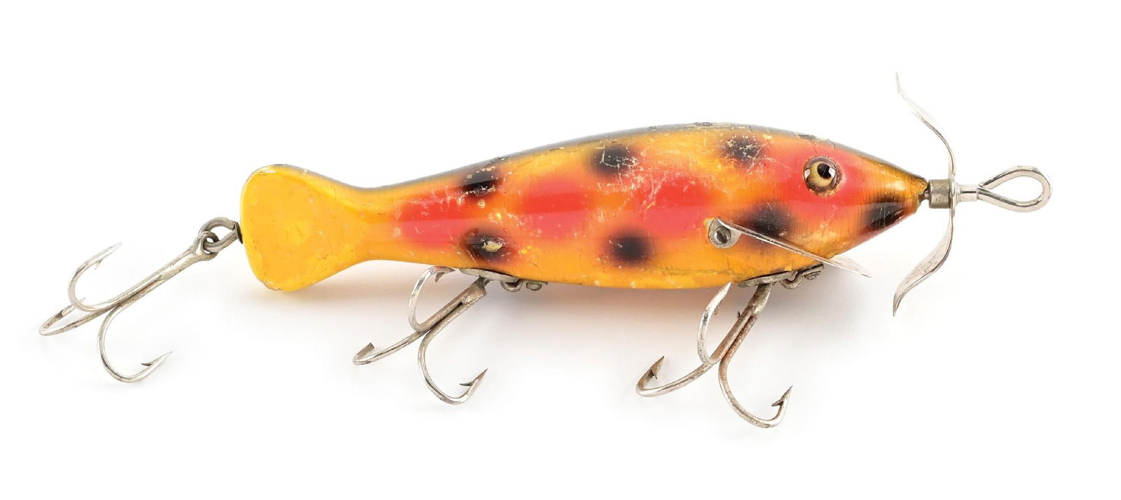LOT OF VINTAGE FISHING LURESFeb 26, 2026Lot of 3 Vintage Fishing LuresBrian Clinton (Australia,1940-?) gouache paintingApr 12, 2026Heddon Baby Dowagiac Vintage Fishing Lure Perch ColorOscar Peterson (MI, 1887-1951), Pike Fish DecoyFeb 26, 2026Special order CCB Co. BeetleMar 27, 2026CCB Co. Baby BeetleMar 27, 2026Black and Gold Fish Decoy4 days Leftfishing/ lure/ new, never used/ japan - Deps Bull Shooter 160F Big Bait/7 days Left#73 Paw Paw Wattafrog JrMar 27, 2026CCB Co. Baby BeetleMar 27, 2026(3) CCB Co. Pikie MinnowsMar 27, 2026CCB Co. BeetleMar 27, 2026#74 Paw Paw WattafrogMar 27, 2026Group of 5 Vintage fishing LuresMar 07, 2026Vintage 14k Yellow Gold Trout Fish Stick Pin with Colorful Enamel5 days Left