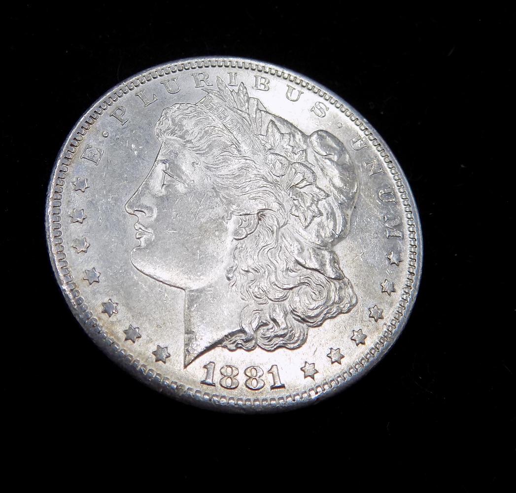 Sold1881 UNCIRCULATED MORGAN SILVER DOLLARUNCIRCULATED MORGAN SILVER DOLLAR. 1881 USA SHIPPING ONLY $5.See Sold Price