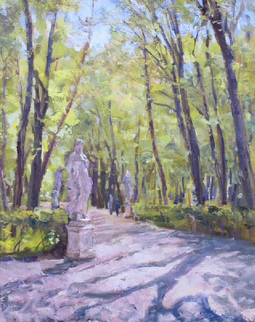 Unclearly Signed 20x16 O/C Garden Path, Statues