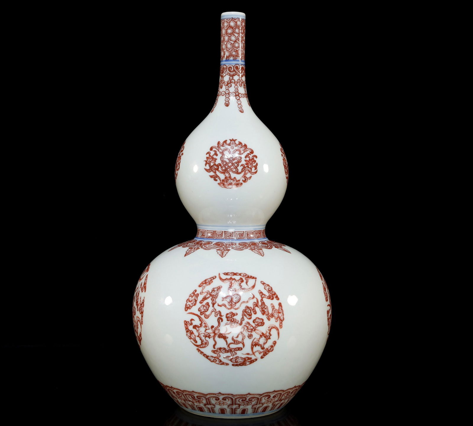 Underglaze-Red Flower Bat Gourd Vase