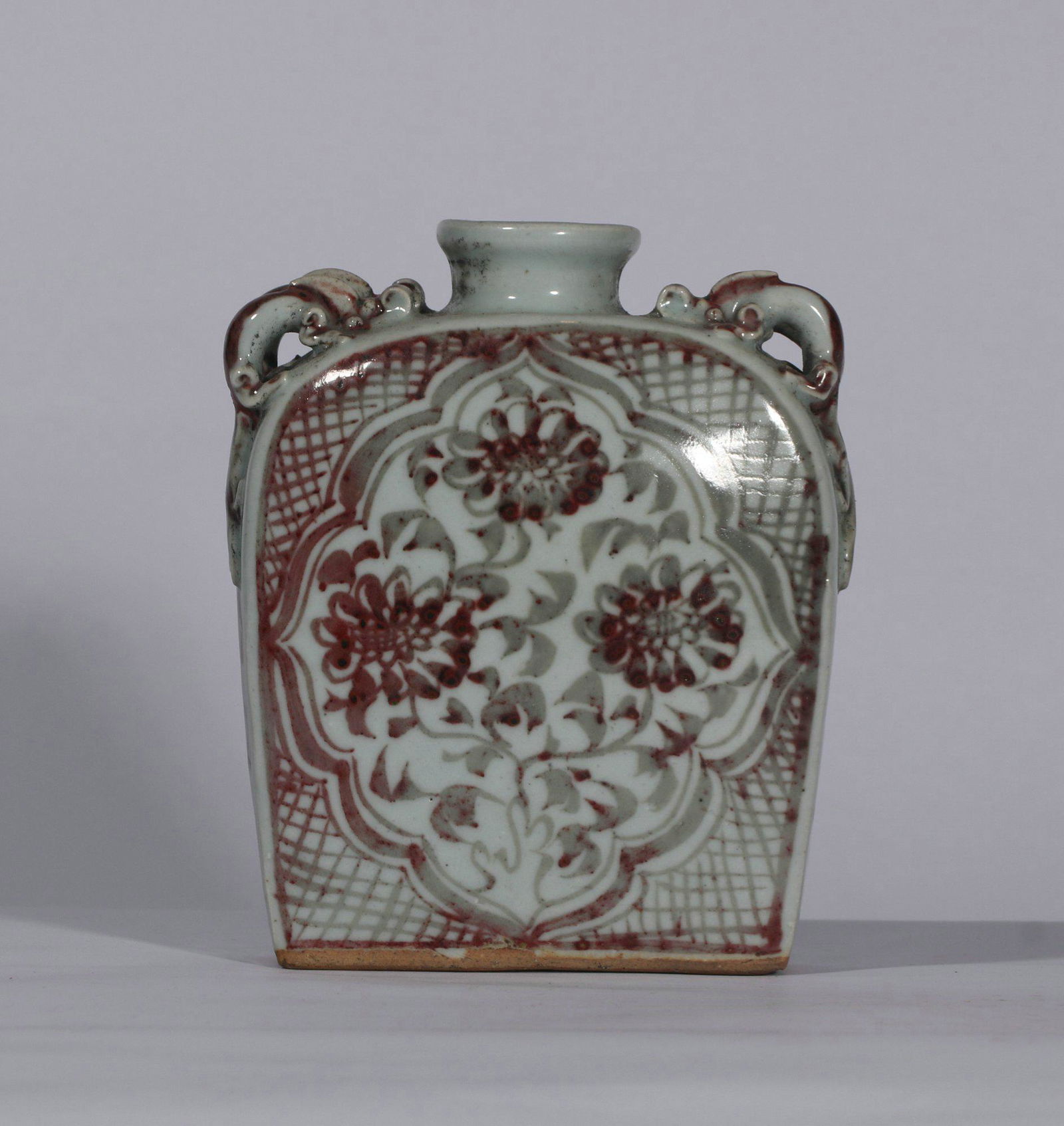 Underglazed Porcelaind Red Porcelain Flat Bottle With