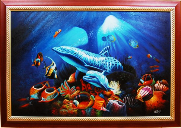 SoldRobert Wyland Undersea World Signed LE Giclee ArtStriking and immersive limited edition giclee on canvas titled "Undersea World" by renowned marine life artist Robert Wyland, in collaboration with William DeShazo. This highly detailed scene transitiSee Sold Price