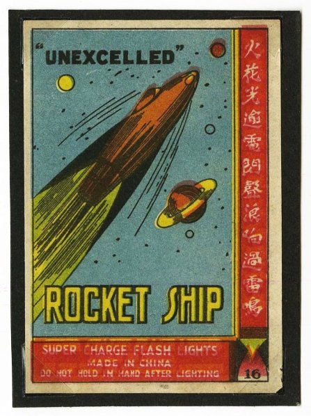 Unexcelled Rocket Ship 16-Pack Firecracker Label.