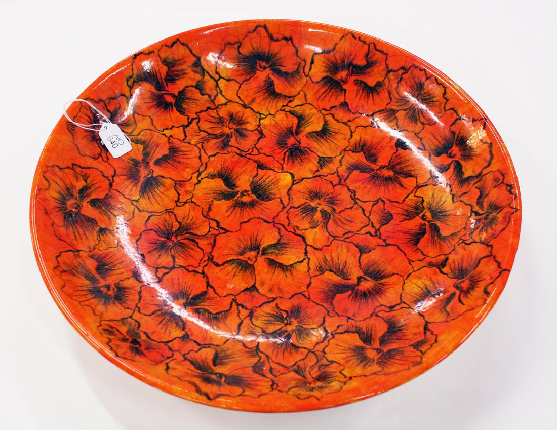 Ipsens Enke, Denmark. Ceramic bowl with wavy rim. Design depicting plant growth. Glaze in orange andFrench Tole Painted ChargerMar 01, 2026Vintage North Carolina Jugtown Pottery ChargerFeb 28, 2026Hand Painted Moroccan Charger / Center Bowl #3Mar 02, 2026Hand-Painted Ceramic Dish With Floral and Bird Design1 day LeftOwens Utopian Ware VaseMar 05, 2026Chinese Export Porcelain Orange Fitzhugh PlatterMar 15, 2026Vintage Studio Pottery Large Drip Glaze Bowl DishMar 01, 2026RARE TALAWARA SPAIN FAIENCE CHARGER MUSTARD BORDER SPONGE DECORATED5 hrs LeftThomas Hoadley b.1949 Art Pottery Centerpiece Bowl4 days LeftSigned Vintage Studio Pottery Bowl with Terra-Cotta Glaze3 days LeftA CARVED CINNABAR LACQUER PLATEMar 01, 2026SAN CAI FLORAL PATTERN POTTERY DISHMar 01, 2026A RED-GLAZED DISH WITH BIRD-AND-FLOWER DESIGNMar 07, 2026Ming Chenghua Enamel Phoenix and Peony Decorated Plate3 days LeftHand Painted Wooden Bowl with Eastern European Folk Floral Art4 days Left