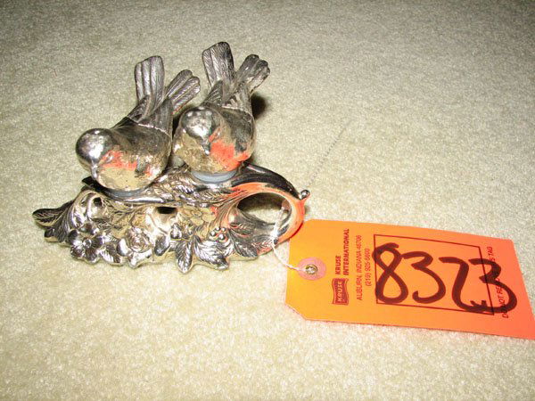 UNIQUE LOVEBIRD SALT/PEPPER SHAKER SET, SILVER