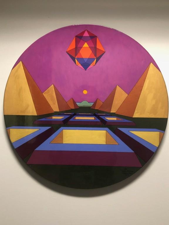 Unique Round Contemporary Optic Art Signed Harris