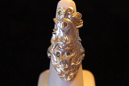 Unisex Art Deco "Rooster Over Head" Solid Sterling