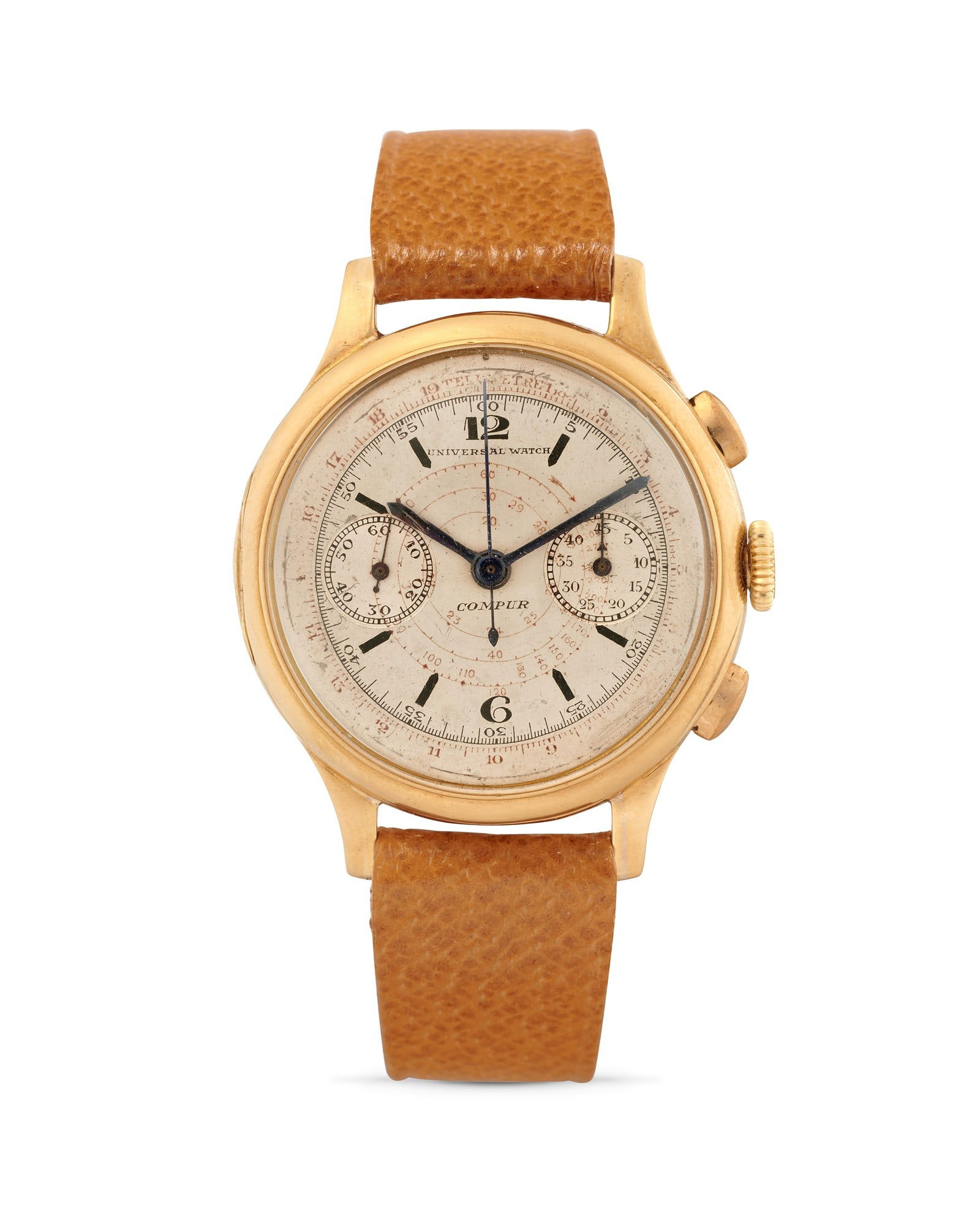 An 18K gold keyless wind open face pocket watch London Import mark for 1932A 9K gold keyless wind open face pocket watch Glasgow import mark for 1924Universal Genève. An 18K gold manual wind chronograph wristwatch Compur, Ref: 12519, Circa...Rolex. A rare 18K gold manual wind triple calendar chronograph wristwatch Jean Claude Killy Dat...5 days LeftFrederique Constant. A gold plated quartz perpetual calendar wristwatch with moon phase Classic...Rolex. A 9K gold manual wind single button chronograph wristwatch Glasgow Import mark for 19375 days LeftAudemars Piguet John Schaeffer Triple Calendar 18K Rose Gold Watch 25870OR18 hrs LeftInternational Watch Co. A 9K gold manual wind wristwatch London Hallmark for 1961Overseas Chrono Ref 49140 Silver Dial Yellow Gold Vacheron Constantin Papers 20005 days LeftChronographe Suisse Two Tone Gold Plated Mechanical Watch 37mm21 hrs LeftBaume & Mercier, a gentlemen's 18ct gold mechanical chronograph strap watch,5 days LeftOmega. A gold plated manual wind triple calendar wristwatch with moon phase Cosmic, Ref: 2486-2...5 days LeftRolex. A 14K gold automatic bubble back wristwatch with custom locomotive dial Oyster Perpetual...5 days LeftRolex. An 14K rose gold automatic watch with custom aeroplane dial Oyster Perpetual, Ref: 3131,...5 days LeftRolex. An 18K rose gold manual wind chronograph wristwatch Piccolino Anti-Magnetique, Ref: 3055...5 days LeftRolex. A 9K gold and platinum manual wind wristwatch Prince, Ref: 1862, Glasgow Import mark for...5 days Left