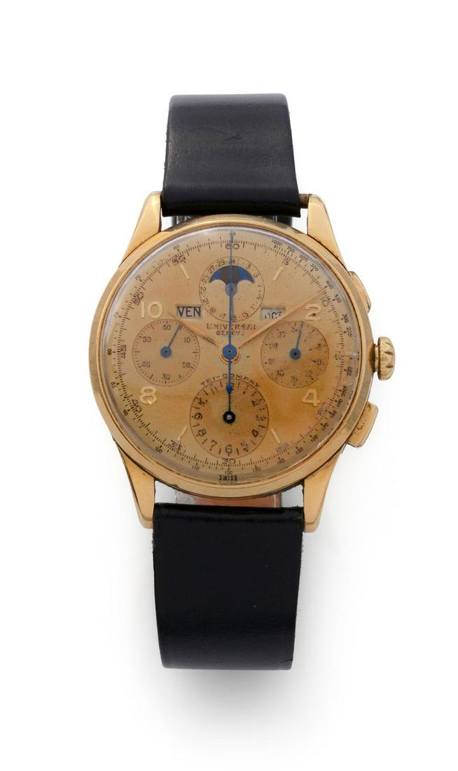 PATEK PHILIPPE | REF.130, A RARE AND HISTORICALLY IMPORTANT YELLOW GOLD CHRONOGRAPH WRISTWATCH, ...Patek Philippe 18K Yellow Gold Complication Watch Ref 5015J4 days LeftVintage Movado Chronograph Wristwatch in 18k Yellow Gold12 hrs LeftPatek Philippe, réf. 5040J, montre en or 750 avec quantième perpétuel et phases de luVintage Vacheron & Constantin Geneve Wristwatch in 18k Yellow Gold12 hrs LeftPatek Philippe Ellipse, 18k Yellow Gold, Ref. 383 days LeftRare Swiss Made Mermod Fres Geneve 18K Yellow Gold Pocket Watch6 days LeftJaeger Le-Coultre 18k Yellow Gold WristwatchMar 22, 2026Patek Philippe 5110J World Time 18K Yellow Gold Automatic Watch with Box and Papers1 day LeftBreitling The "Scott Carpenter" Cosmonaute: An Historic 18k Yellow Gold Chronograph Wristwatch Ref.Mar 29, 2026Daytona 16518 18K Yellow Gold Automatic Chronograph with Box and Papers7 hrs LeftRolex Oyster Perpetual Ref 3372 14k Gold Bubbleback 32mm Vintage 1940s Automatic WatchMar 22, 2026Cartier Pasha Chronograph 18K Yellow Gold Watch 30009 with Box and Papers4 days LeftRolex 14k Gold Filled Wrist Watch Full Set, Ref.3 days LeftVintage Breitling 18k Rose Gold WristwatchMar 22, 2026Omega Pre-Moonwatch Calibre 33.3 Chronograph Tropical Dial Highly Important Rare Men's WristwatchMar 29, 2026