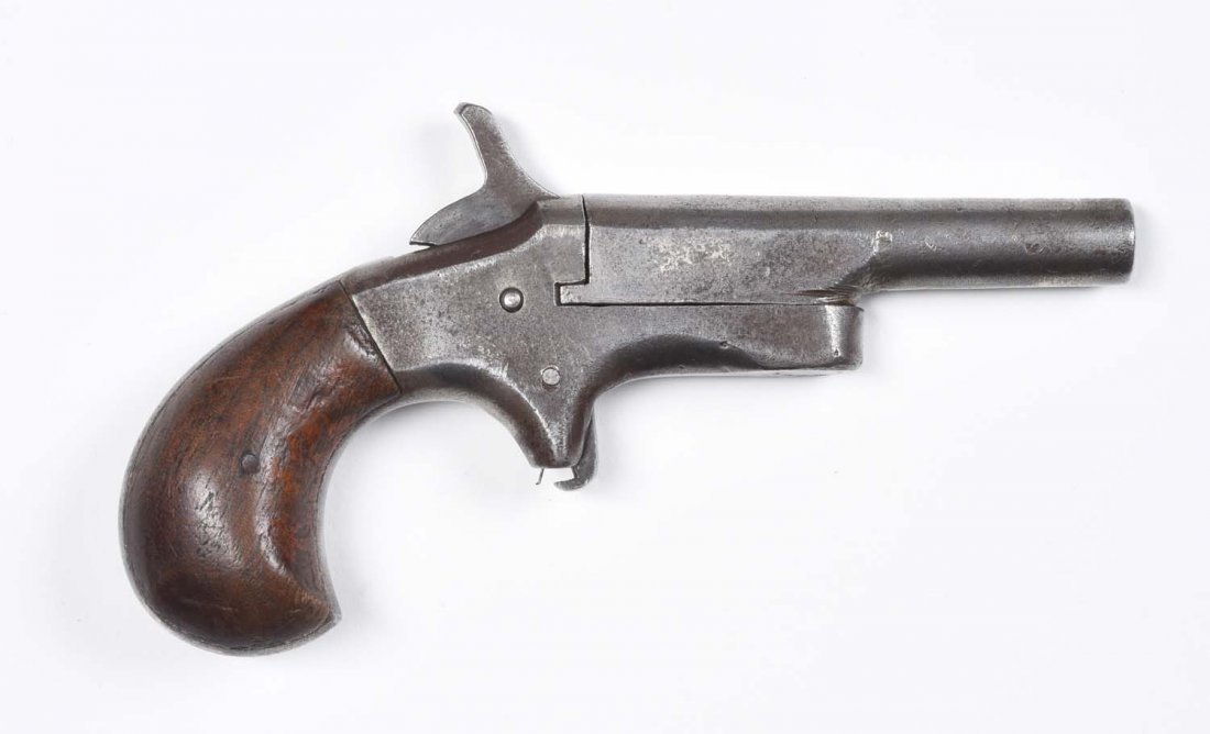 SoldH.C. LORNBARD .22 CAL SINGLE-SHOT DERRINGER, C.1860'S,H.C. LORNBARD .22 CAL SINGLE-SHOT DERRINGER, C.1860'S, #724, BL 3 1/2 (AS IS; CHIP ON GRIP/NON-OPERATING)See Sold Price