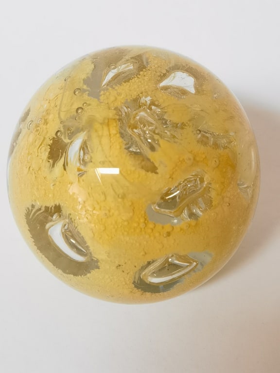 Unmarked Yellow Bubble Glass Paperweight