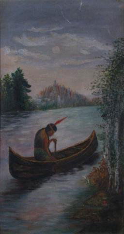 Unsigned 22.5x12.5 O/B Native American in Canoe