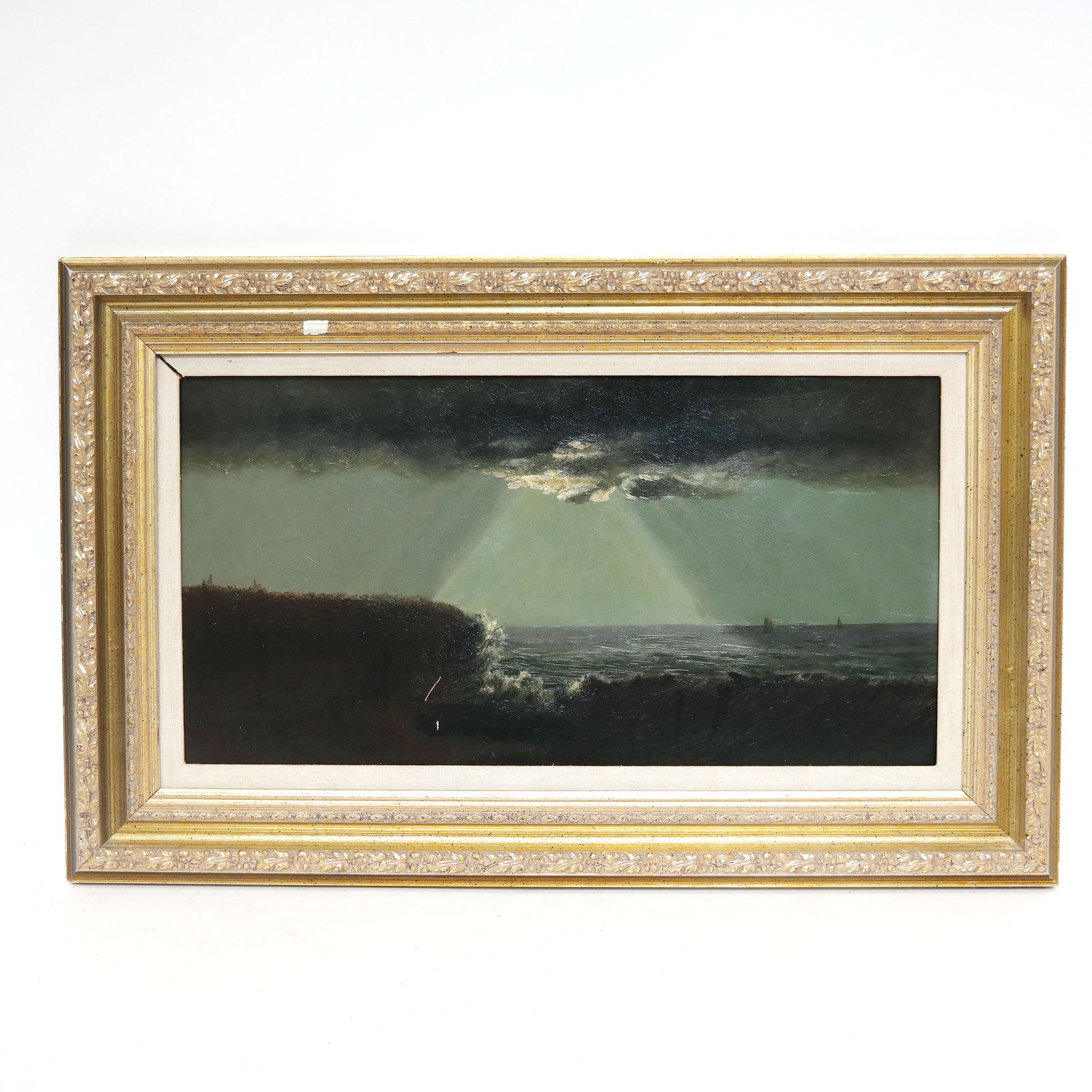 SoldPainting, Nels HagerupNels Hagerup (Norwegian/American, 1864-1922), Seascape, oil on board, unsigned, overall (with frame): 21"h x 27.5"wSee Sold Price