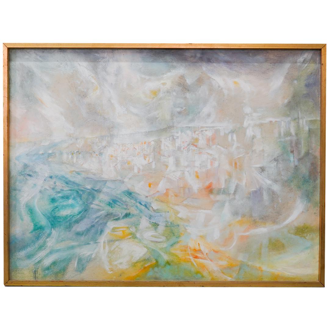 Mid 20th Century Modern Abstract Olive and Cream Painting