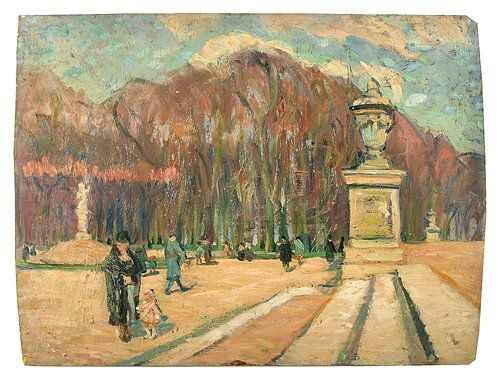 Unsigned oil on panel, park scene with