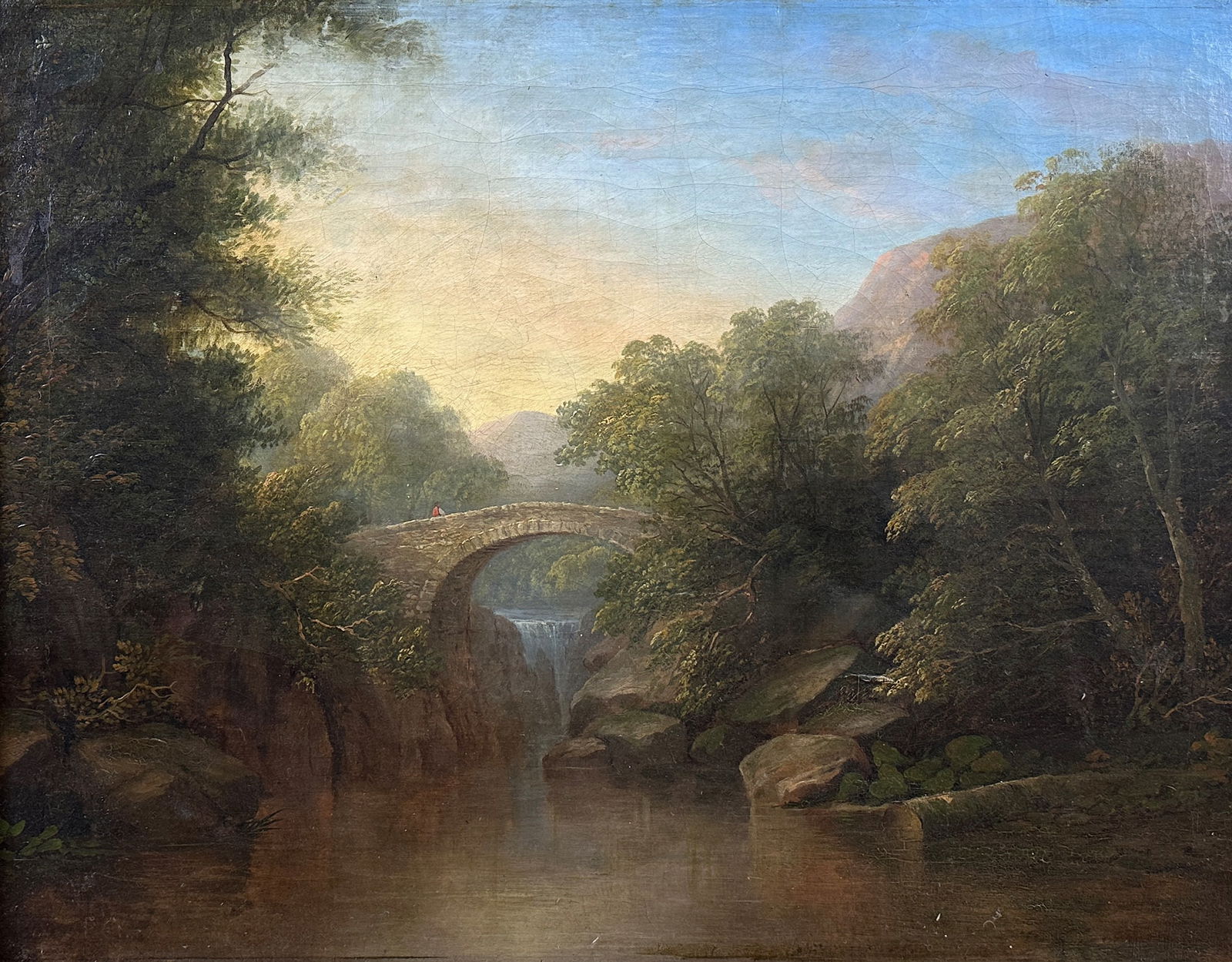 UNSIGNED (XIX). Romantic forest landscape with bridge by the river.