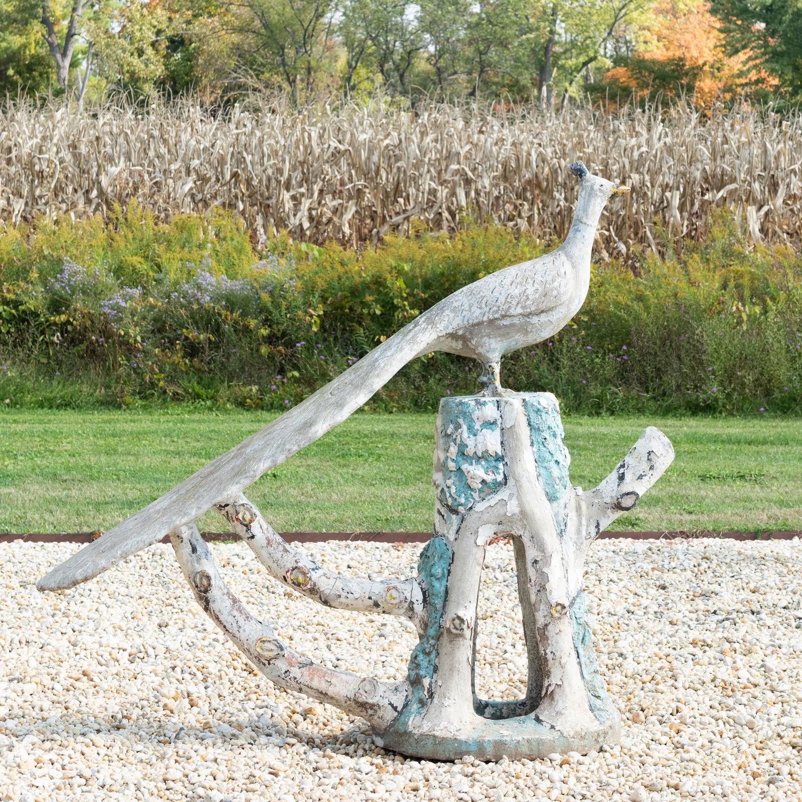 Unusual Polychrome Painted Composition Peacock on Stand
