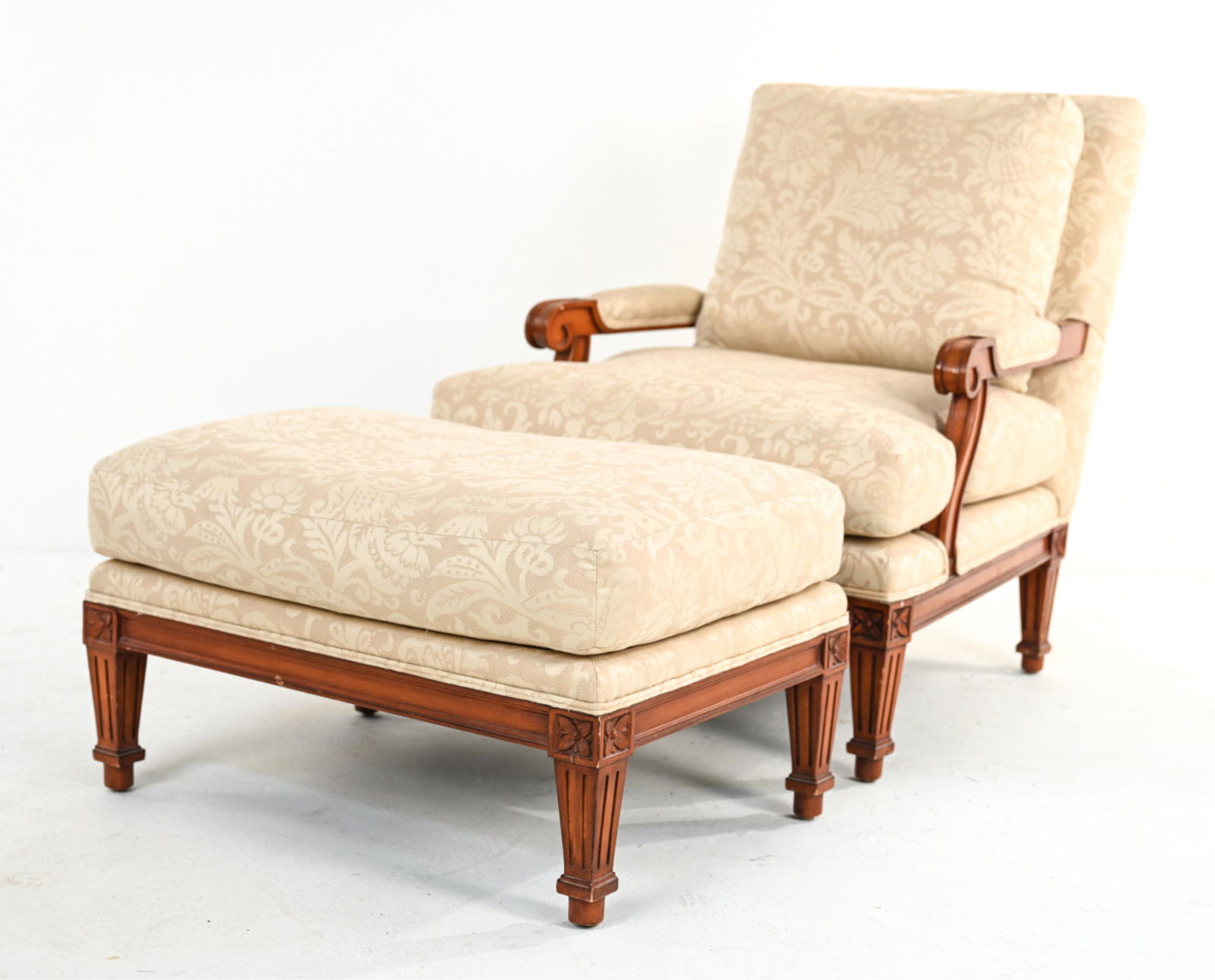 UPHOLSTERED ARMCHAIR AND OTTOMAN