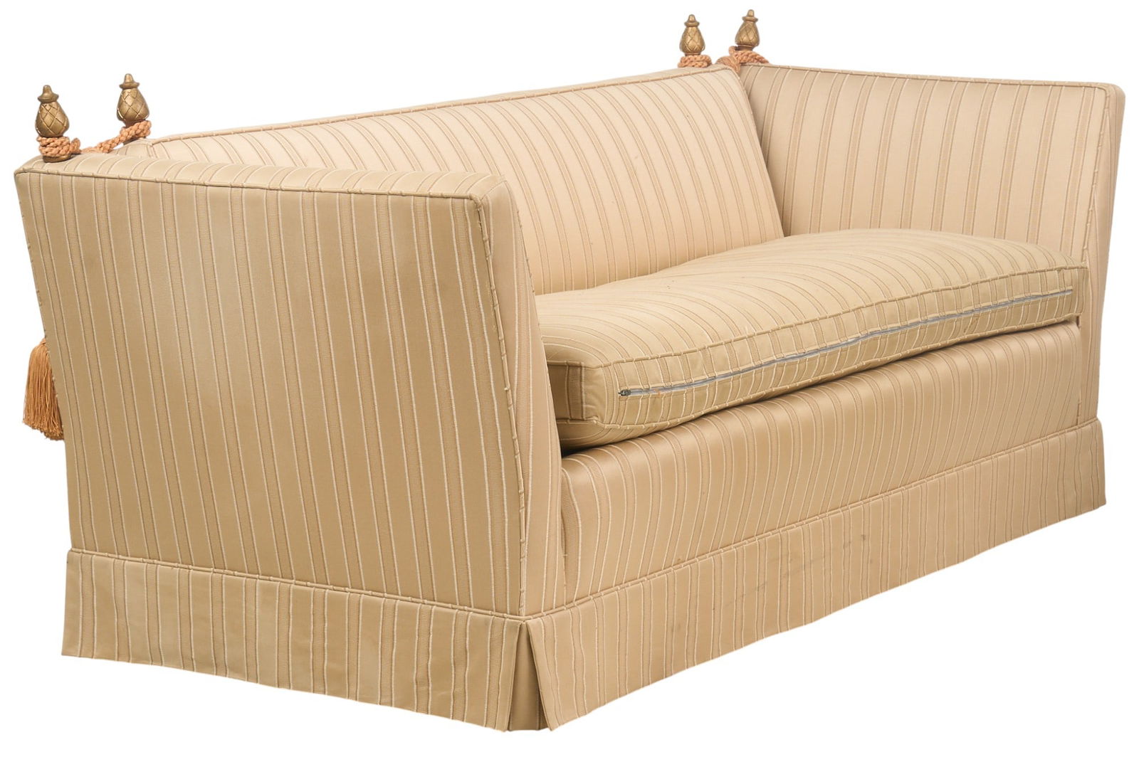 Upholstered Sofa with Finials and Tassels