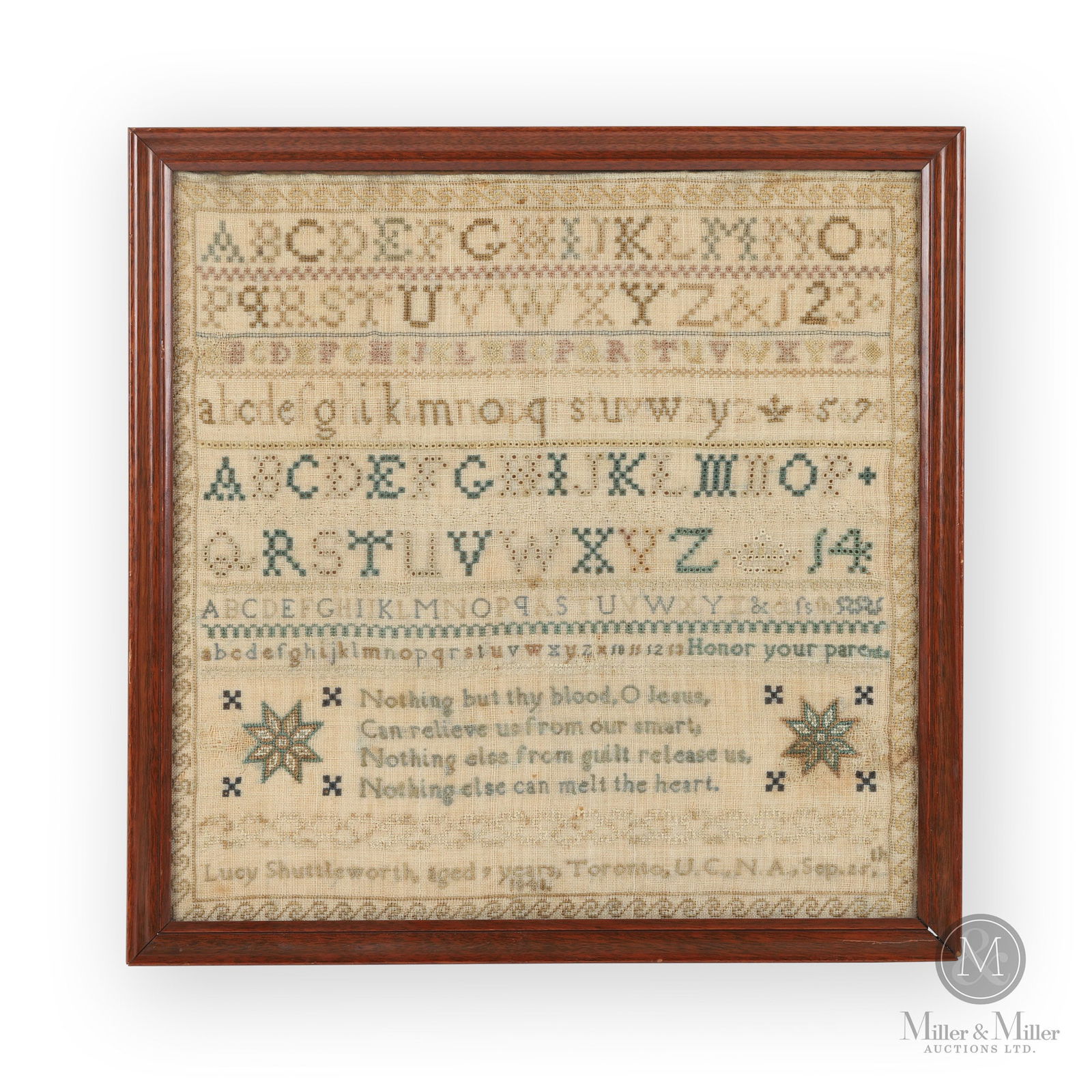 SUSAN WHITNEY (AMERICAN) NEEDLEWORK SAMPLER. Frame, 18.25"h. 14"w.Mar 19, 2026ANN DELUCY BURR (HARTFORD, CONNECTICUT, B. 1816) NEEDLEWORK SAMPLER, DATED 1824. Frame, 17"h. 12"w.Mar 19, 2026BETHIAH H. FOSTER (AMERICAN, B. 1830) NEEDLEPOINT SAMPLER. Frame, 15.5"h. 19.75"w.Mar 19, 2026Early 19th C. Framed Needlepoint SamplerMar 28, 2026SARAH HOMER (AMERICAN) FAMILY REGISTER NEEDLEWORK SAMPLER, DATED 1809.Mar 19, 2026ELIZABETH YOUNG (AMERICAN, B. 1748) NEEDLEWORK SAMPLER, DATED 1761. Frame, 9.75"h. 8.25"w.Mar 19, 2026SOPHIA PULSIPHER (MASSACHUSETTS, B. 1798) WHITE DOVE SCHOOL NEEDLEWORK SAMPLER, DATED 1811. Frame,Mar 19, 2026ELIZA ELDERD (AMERICAN) NEEDLEWORK SAMPLER, DATED 1806.Mar 19, 2026HANNAH SHED (AMERICAN, B. 1824) NEEDLEWORK SAMPLER, DATED 1833. Frame, 19"h. 18"w.Mar 19, 2026SALLY ANN HOWARD (AMERICAN, B. 1824) NEEDLEWORK SAMPLER, DATED 1834. Frame, 12.5"h. 14.25"w.Mar 19, 2026MERIBAH ELLIS (AMERICAN) FAMILY RECORD PETIT POINT SAMPLER.Mar 19, 2026FINE AND RARE SUSAN TILTON (DANVILLE, VERMONT, B. 1813) NEEDLEWORK SAMPLER, DATED 1827. Frame, 17"h.Mar 19, 2026MARY WARREN (DELAWARE COUNTY, NEW YORK, B. 1823) NEEDLEWORK SAMPLER, DATED 1831. Frame,16.5"h.Mar 19, 2026AMERICAN NEEDLEWORK SAMPLER. Frame, 21."h. 23.75"w.Mar 19, 2026ZOE DAVIDSON (NEW HAMPSHIRE, B. 1804) NEEDLEWORK SAMPLER, DATED 1817. Frame, 22.5"h. 18.5"w.Mar 19, 2026ANNE O'BRIEN (AMERICAN, B. 1797) NEEDLEWORK SAMPLER, DATED 1809. Frame, 18.5"h. 17"w.Mar 19, 2026