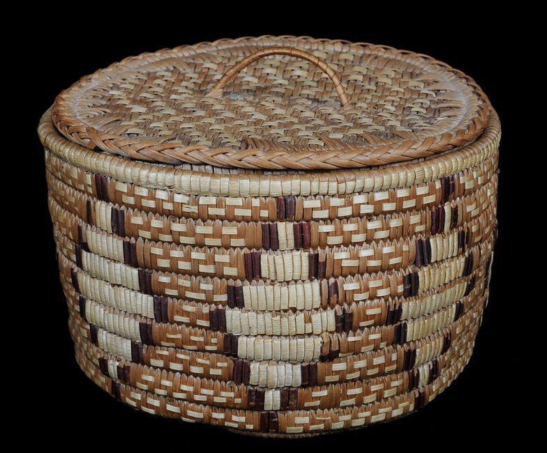 Upper Fraser River Lidded Basket with Diamond Imbr