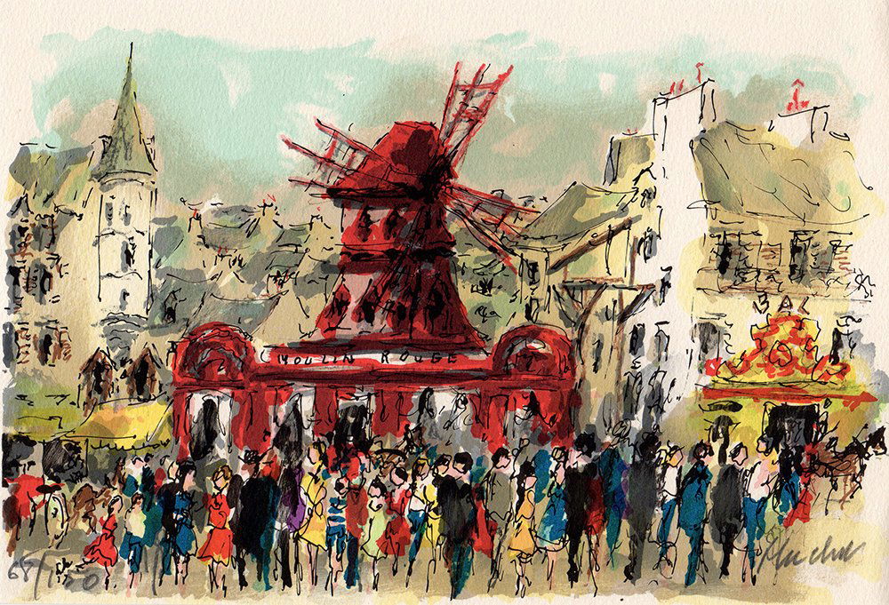 Urbain Huchet Signed Lithograph Moulin Rouge