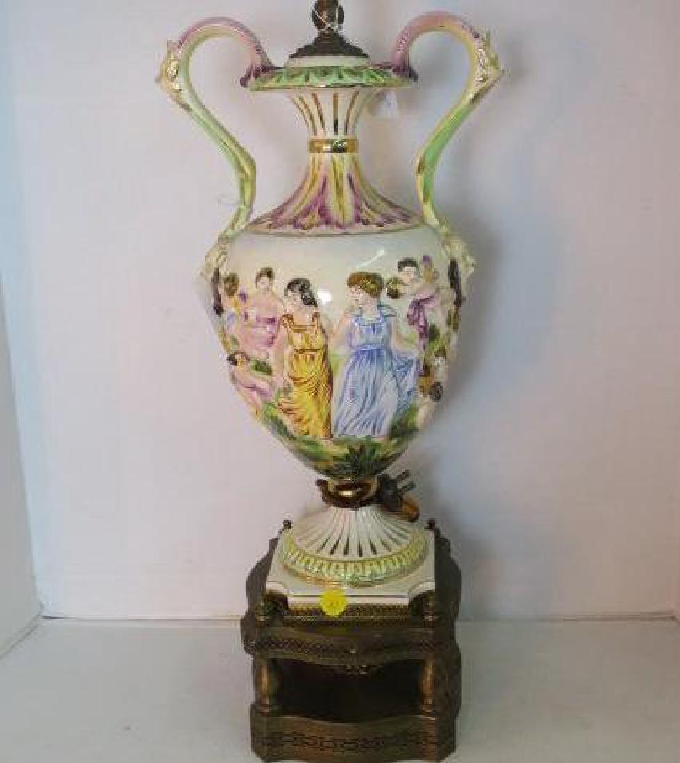 Urn Shaped Capo di Monte Double Handled Table Lamp: