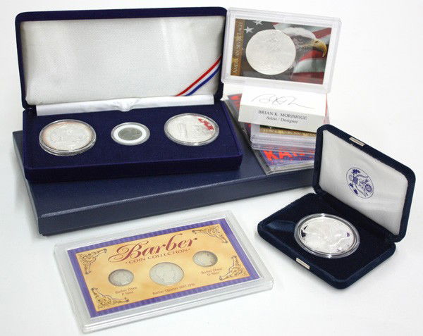 SoldDIVERSE US SILVER COINS & MEDALS GROUPsilver coins include 3 Prestige proof sets, 1986, 1987 & 1990, 2 US Olympics silver dollar 3-coin sets, 1983 & 1984, a 1983/84 US Olympics silver dollar 2-coin proof set, (4) 1987 US Constitution silvSee Sold Price