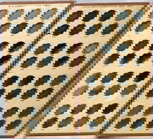 US COPPER LARGE 1 CENT, 1798-1856, 35 TOTAL
