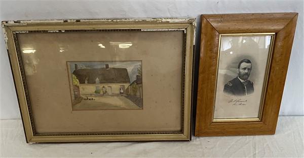 U.S. Grant Etching and Signed 19th Cent. Framed Watercolor