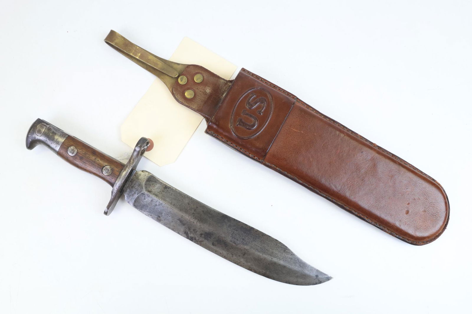 SoldUS Military Krag Bayonet converted into a Fighting Knife (E2N)This US Military M1898 Krag Bayonet was converted into a fighting knife by cutting down to muzzle loop and removing the catch button. Good condition - no scabbard.See Sold Price