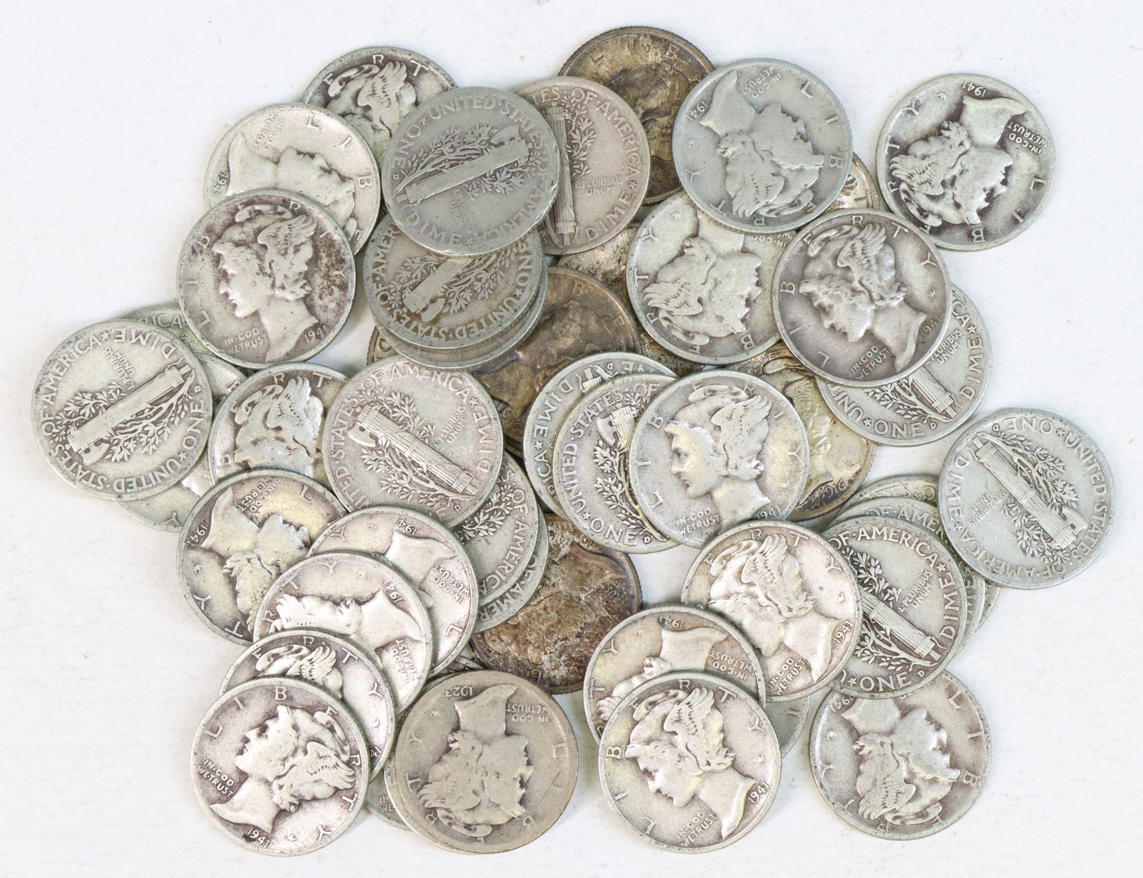 Sold94pc US Mercury Silver Dimes Assorted Dates. Includes94pc US Mercury Silver Dimes Assorted Dates. Includes various years 1923 to 1945. Mostly circulated condition. Estate coin collection.See Sold Price