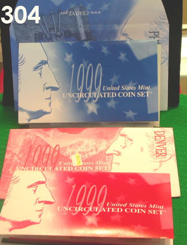 Sold1999 - 2002 U.S. Mint Unc. Coin Sets in OGP (11)Eleven (11) United States Mint uncirculated coin sets in OGP as follows: ---1999-P uncirculated 9-coin set with Mint token; ---1999-D uncirculated 9-coin set with Mint token; ---1999-P, D uncirculatedSee Sold Price
