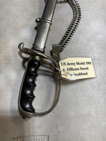 SoldAntique sword is a model 1902 U.S. army officerAntique sword is a model 1902 U.S.army officer's sword. Scabbard. L:102cm.See Sold Price