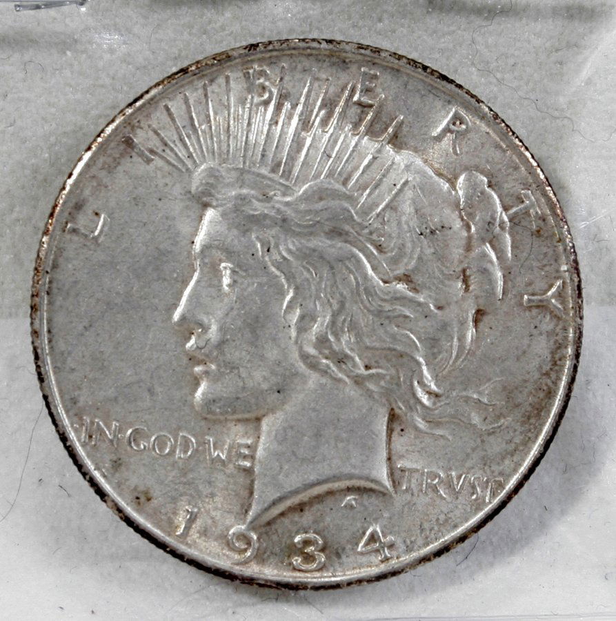 Uncertified 1934 Peace Silver Dollar AU Slider