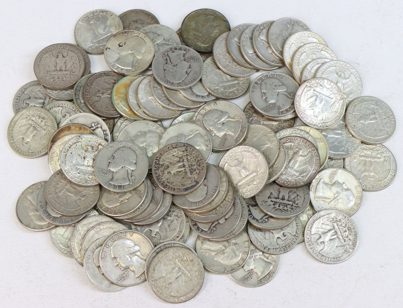LOT ASST. U.S. SILVER INCL. QUARTERS, DIMES, $6.70 F.V.Feb 21, 2026$10 FACE US SILVER 40% KENNEDY HALF DOLLARSFeb 05, 2026$10 FACE US SILVER 40% KENNEDY HALF DOLLARSFeb 05, 2026$10 FACE US SILVER 40% KENNEDY HALF DOLLARSFeb 05, 2026$10 FACE US SILVER 40% KENNEDY HALF DOLLARSFeb 05, 2026$10 FACE US SILVER 40% KENNEDY HALF DOLLARSFeb 05, 2026$10 FACE US SILVER 40% KENNEDY HALF DOLLARSFeb 05, 2026$10 FACE US SILVER 40% KENNEDY HALF DOLLARSFeb 05, 2026Mixed Silver Quarters Half Dollars Dollars5 hrs LeftASST US SILVER COIN INCL. HALVES/QUARTERS/DIMES/WARTIMEFeb 21, 2026Lot of 10 Ten Silver Washington Quarters #4Jul 21, 2025Lot of 10 Ten Silver Washington Quarters #3Jul 21, 2025Lot of 10 Ten Silver Washington Quarters #5Jul 05, 2025(20) Random Date 90% Silver Washington Quarters13 hrs Left(20) Random Date 90% Silver Washington Quarters13 hrs Left50 pcs 90% Silver Roosevelt Dimes- Random Dates13 hrs Left